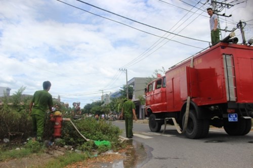 Kho sơn của công ty Thanh Hoàng nằm đối diện với khu chợ dân sinh, tại đây có 1 số trụ tiếp nước nhưng lượng nước tuôn ra là rất yếu. Lực lượng PCCC hiện đang cân nhắc phương án hút nước biển lên để dập lửa (nhà kho này cách bờ biển khoảng 100m).