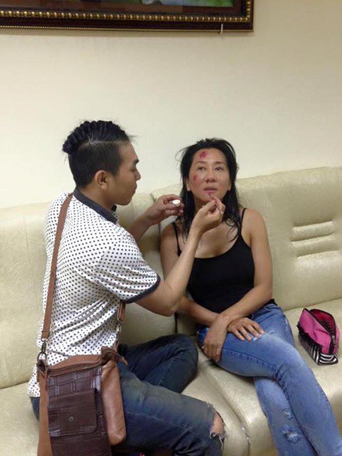 "Và niềm vui đã quay trở lại sau lần chạy sô" là câu hát vui của "thánh chế" Hồ Minh Tài khi hóa trang cho các diễn viên trong phim "Nữ Đai Gia” của đạo diễn Lê Văn Kiệt.
