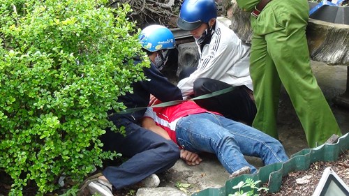 Dương và Tiến thực nghiệm lại hiện trường việc sát hại cháu Vỹ - Ảnh: Trương Nguyễn