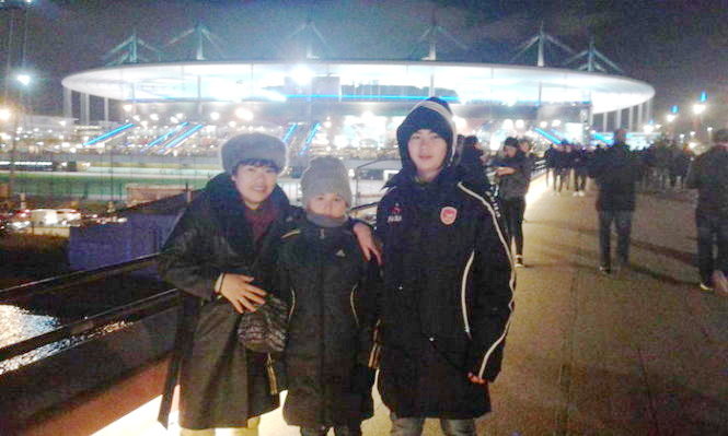 Chị Hải Rosano cùng hai con trai chụp hình ở sân vận động State de France trước khi có bom nổ vào tối 13-11 - Ảnh: Nhân vật cung cấp