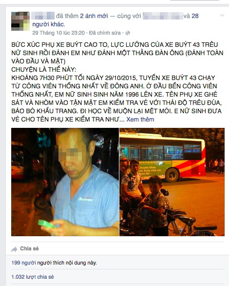 Dân mạng đang xôn xao với sự việc kinh hãi xảy ra ngay giữa ban ngày ở giữa thủ đô Hà Nội! Đó là sự việc phụ xe bus tuyến 43 hành hung 1 nữ sinh do giở trò sàm sỡ không thành! Cư dân mạng đã không thể ngồi yên khi cùng chia sẻ câu chuyện để truy tìm tên này!