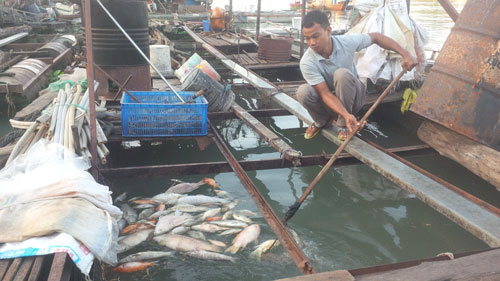 Theo ông Khiêm thì cá bắt đầu nổi đầu có biểu hiện ngộp nước và nổi lên mặt nước từ 6h sáng đến 10h trưa. Sau đó cá từ từ chết trong lồng bè.