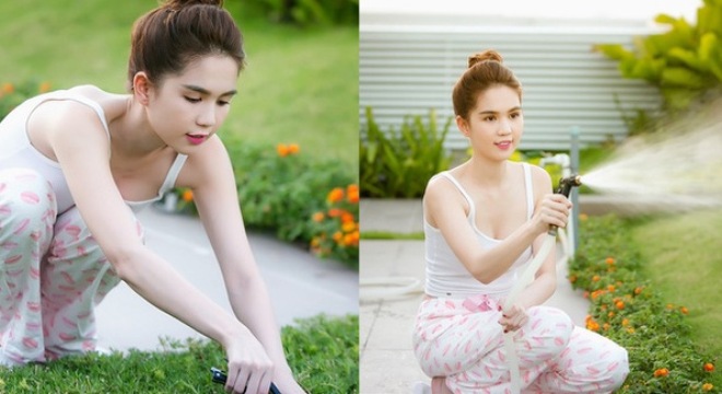 Mặc dù nhà có tới 2 người giúp việc nhưng Ngọc Trinh vẫn muốn tự tay được chăm chút cho tổ ấm của mình. Cô thường trực tiếp cắt tỉa cây cảnh và chăm sóc đàn cá trong nhà.