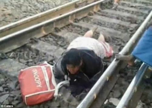 Sự việc xảy ra tại Ấn Độ. Cô đã không may ngã xuống đường ray ngay trước khi đoàn tàu xảy ra. Thật may mắn cô đã tự cứu mình bằng cánh nằm im không nhúc nhích cho tới khi đoàn tàu chạy qua.