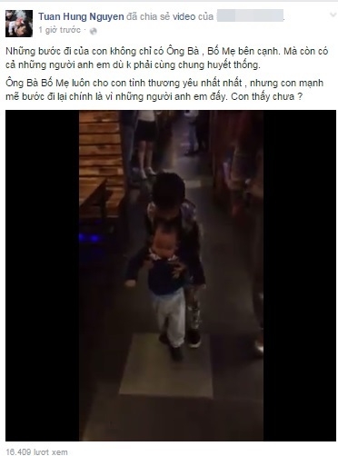 Mới đây, trên trang cá nhân của Tuấn Hưng, nam ca sĩ đã hào hứng khoe với người hâm mộ hình ảnh cậu con trai cưng Su Hào chập chững bước những bước đi đầu tiên. Nam ca sĩ không giấu nổi niềm vui, sự hạnh phúc tột độ: “Những bước đi của con không chỉ có ông, bà , bố, mẹ bên cạnh. Mà còn có cả những người anh em dù không phải cùng chung huyết thống. Ông, bà, bố, mẹ luôn cho con tình thương yêu nhất nhất, nhưng con mạnh mẽ bước đi lại chính là vì những người anh em đấy. Con thấy chưa?”.
