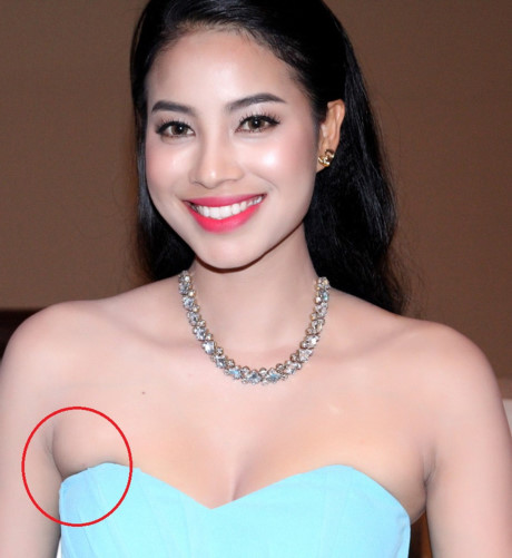 Hiểu rõ khuyết điểm này nên người đẹp thường che lấp bằng tóc hoặc chọn những trang phục không bị phô điểm hạn chế.