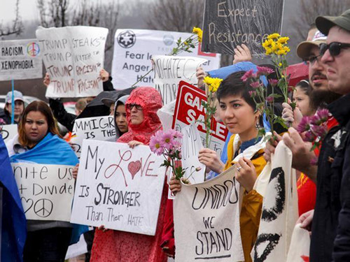 Người dân Mỹ biểu tình phản đối ứng viên Donald Trump tại Cincinnati, bang Ohio ngày 13.3.2016 - Ảnh: Reuters