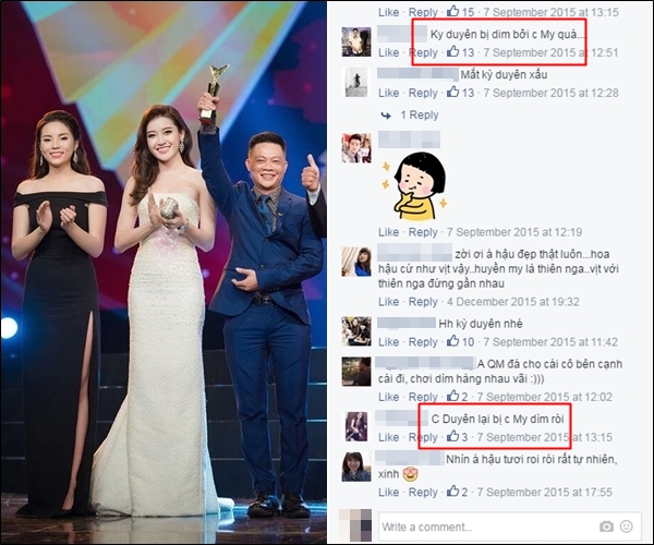 Không chỉ dừng lại ở việc khen người nọ – chê người kia, nhiều nhân vật còn thường xuyên ghé thăm trang cá nhân của Á hậu Huyền My để “công kích” người đẹp mỗi khi đăng ảnh cùng đàn em. Phải chăng phương châm “facebook ai người đó đẹp” chính là nguyên nhân khiến Huyền My thường bị cho là có ý “dìm hàng” Kỳ Duyên?