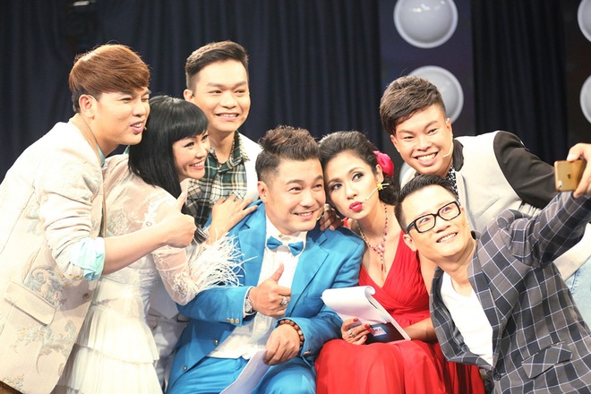 Đội hình giám khảo, MC và các huấn luyện viên của chương trình vui vẻ bên nhau.