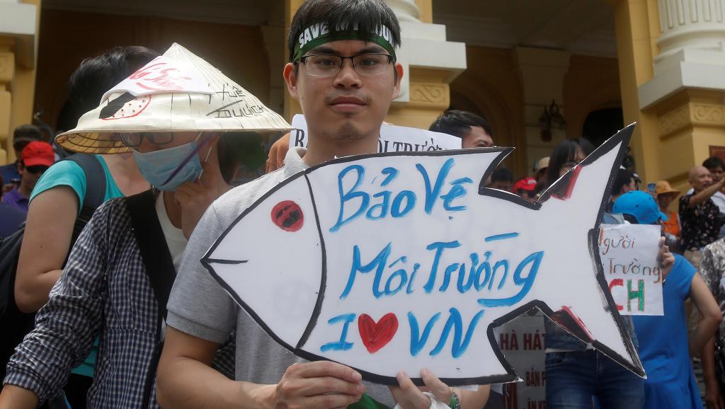 Ảnh minh họa - Cuộc biểu t́nh tại Hà Nội ngày 01/05/2016, đ̣i bảo vệ môi trường sau vụ cá chết hàng loạt tại Vũng Áng, Hà Tĩnh. Reuters
