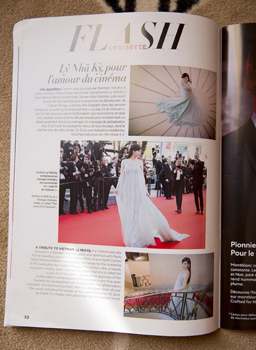 Tạp chí viết: “Một sự khâm phục đến từ Việt Nam, Lý Nhã Kỳ, ngôi sao Việt Nam, diện váy của Georges Hobeika và trang sức của Paolo Piovan. Cô tạo dáng ở sảnh khách sạn Grand Hyatt Cannes Hotel Martinez trước khi xuất hiện trên thảm đỏ buổi chiếu phim Graduation của đạo diễn Cristian Mungiu. Nữ diễn viên, người tích cực tham gia làm từ thiện và được ví như “Công nương Diana của Việt Nam” là một trong những nhà bảo trợ của Cinefondation. Chương trình này sẽ trao giải thưởng cho 3 người chiến thắng và góp phần giúp họ phát triển phim điện ảnh.”.