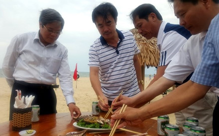 Cũng trong chiều 25.5, LĐLĐ tỉnh Quảng Bình đã tổ chức cho CNVC cơ quan và du khách thưởng thức những món hải sản ngay trên bãi biển.