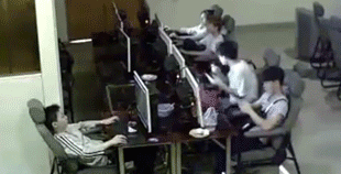 Vietbf.com - Một vụ điện giật khiến một thanh niên tử vong vì anh này dùng điện thoại chơi game trong lúc đang cắm sạc trong quán cafe Internet tại Vũ Hán, Trung Quốc. Hình ảnh từ camera an ninh của quán cho thấy, khi anh này đang cầm chiếc smartphone trên tay thì bất ngờ bật ngửa ra sau. Người anh trai ngồi cạnh định cứu em thì tia lửa điện xẹt dưới đất khiến anh này hoảng sợ.