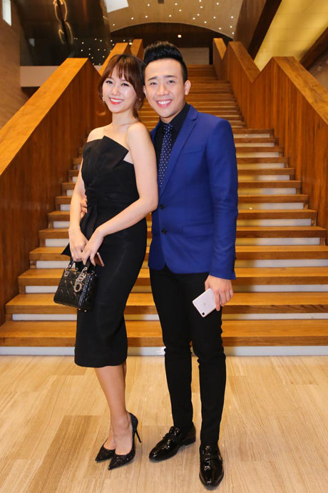 Trấn Thành không ngại thể hiện sự quan tâm bạn gái khi cả hai sánh đôi đi sự kiện.