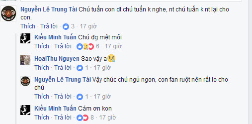 Trước chia sẻ đầy tâm trạng của Cát Phượng, Kiều Minh Tuấn trả lời fan rằng anh đang mệt dưới status: "Ngủ ngon! Tâm an...".