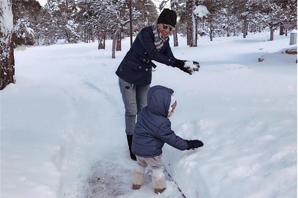 Hình ảnh con trai Thu Minh nghịch tuyết cùng bố mẹ trong chuyến đi Mỹ vào đầu năm nay.