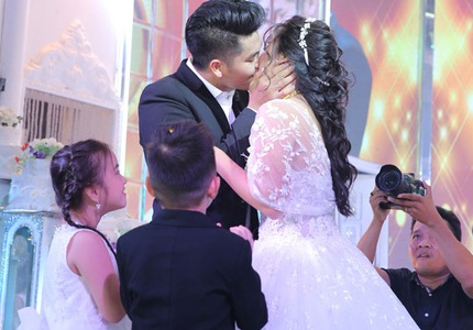 Nụ hôn ngọt ngào của cặp đôi tại nơi tổ chức hôn lễ đã nhận được sự chúc phúc từ rất nhiều người thân, bạn bè và fan.