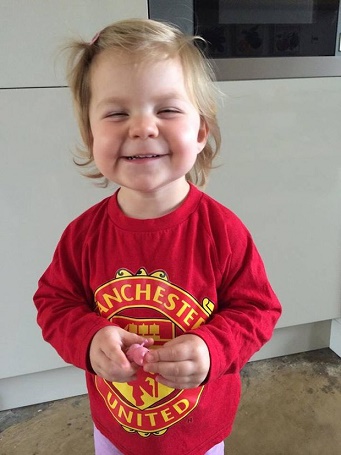 Cô bé 3 tuổi trông vô cùng đáng yêu khi khoác chiếc áo đấu của đội chủ sân Old Trafford. Bố của cô, James, một fan trung thành của "Quỷ đỏ" đang sống ở Anh đã quay video này.