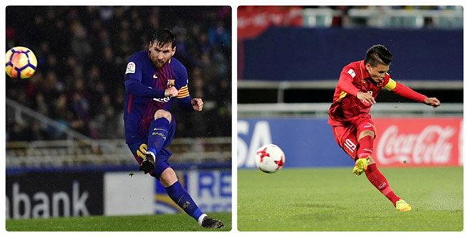 Nhưng kỳ thực ở thời điểm này, tiền vệ trẻ Nguyễn Quang Hải mới thực sự phù hợp với cái danh xưng “Messi Việt Nam”. Cầu thủ của CLB Hà Nội mang trong mình những đặc trưng nổi bật của siêu sao người Argentina. Nếu như Công Phượng là cầu thủ thuận chân phải, thì Quang Hải sở hữu chiếc “kèo trái” cực ngọt, giống hệt Messi.
