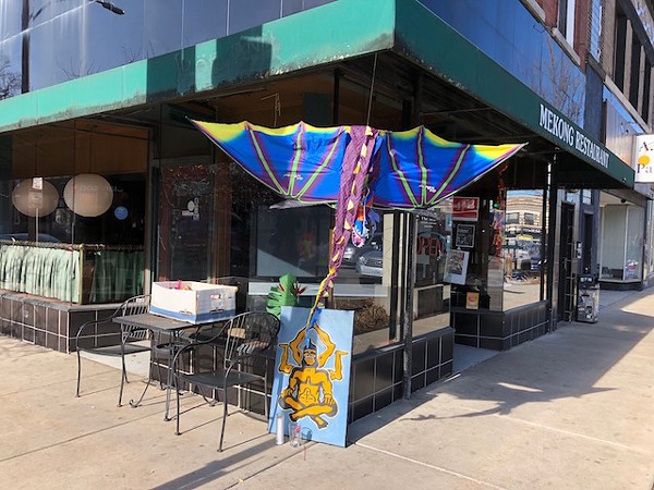 Có người đặt vài món trang trí để tưởng niệm anh Trần Tiến Từ bên ngoài nhà hàng Mekong ngày thứ Ba. (Courtesy of Natasha Bahrami)