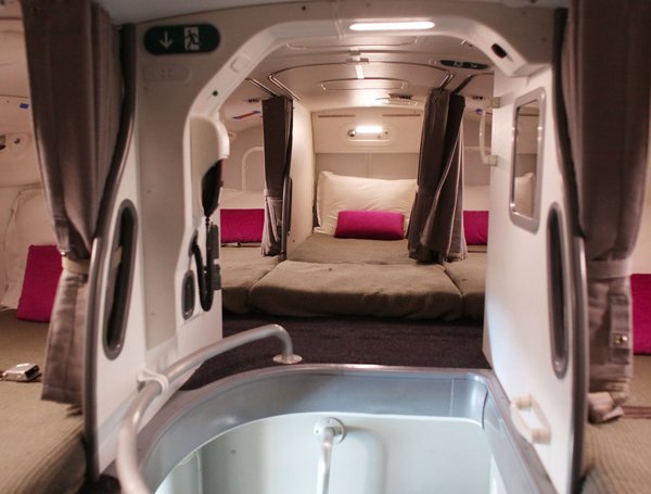 Trong khoang nghỉ trên những chiếc Boeing 777 của Air New Zealand, ghế của phi công có thể gập lại trong khi gường ngủ nằm ngay phía sau.