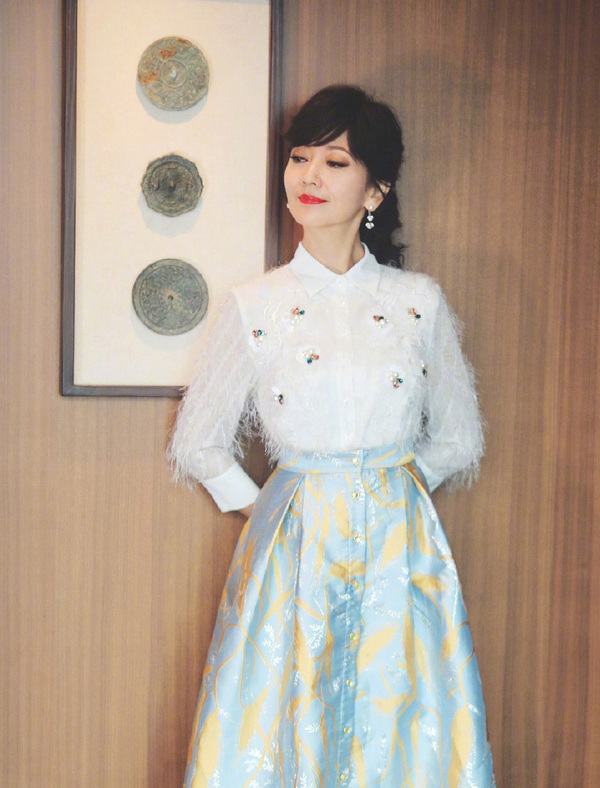 Mỹ nhân 'Bến Thượng Hải' diện trang phục ôm sát, tôn vóc dáng đã gây ấn tượng nhờ phong cách gu mặc trang nhã, duyên dáng thời trang trẻ trung so với tuổi của nữ diễn viên Triệu Nhã Chi sinh năm 1954, cũng là tên tuổi lớn trong làng phim Hoa ngữ, có nhiều tác phẩm để đời.