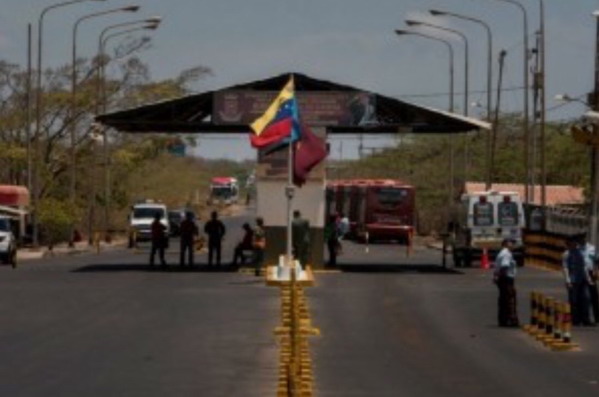 Ảnh Vệ binh quốc gia Bolivar đă khóa cửa khẩu biên giới giữa Colombia và Venzuela.