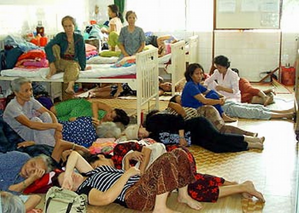 Hình ảnh bệnh nhân tại Bệnh viện Ung Bướu Hồ Chí Minh: Thay vì nằm trong phòng, họ chuyển ra nằm ngoài trời để được tự do lăn lóc, tự do mỗi người một giường rộng rãi và ngắm mây trời thoải mái. Còn trong phòng chờ thì ngập lụt. Phải nói rằng, thời đại Hồ Chí Minh là thời kỳ rực rỡ nhất trong lịch sử Việt Nam.
