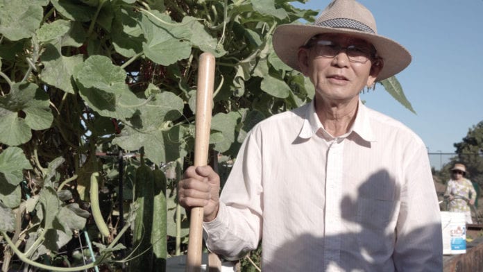 Ông Chiên Đặng: “Rất nhiều đứa nhỏ lớn lên ở Mỹ không biết tên của các loại rau Việt, nhưng từ khi chúng nó được dẫn đến đây thì đều biết.” (Hình: Kalynh Ngô)