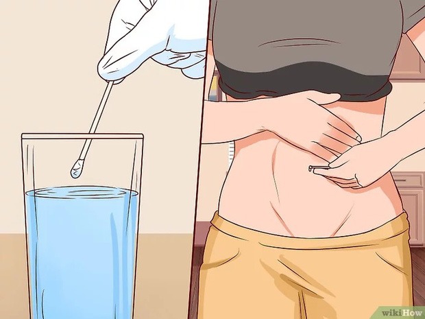 1. Nhúng một miếng bông gòn vào cồn và chà nhẹ vào rốn