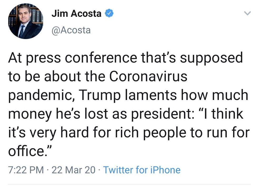 --> Vì sao dự luật này bị ĐDC block ? Schumer chỉ trích rằng vẫn còn quá ít ngân sách cứu trợ đặc biệt dành cho y tế như bệnh viện và thiết bị y khoa và nhân viên y tế. Theo tôi, đây là những mấu chốt thiết yếu mang ý nghĩa thực tế, rõ ràng và có thể mang lại hiệu quả nhanh chóng nhất ! Cứu dân là chính chứ 0 fải cứu các đại Cty chỉ vì các hạ và thượng nghị sĩ đã mua cổ phiếu của họ và mất tài sản đã đầu tư, tưởng 0 cần fải nhắc lại tên 4 người kia nữa! Song song với đó là còn nghi vấn Trump tự do ém nhẹm và dùng tiền thuế dân này mà trục lợi nhằm cứu các cơ sở kinh doanh và tất cả những gì mà liên quan đến Trump, thì lại càng nên block ! Đây là cho thiên hạ thấy rõ nhất cái đốn mạt đê tiện của Trump: tiền là trên hết ! Dân chết mẹ nó hết who cares ??? Lãnh đạo gương mẫu quá fải 0 ?