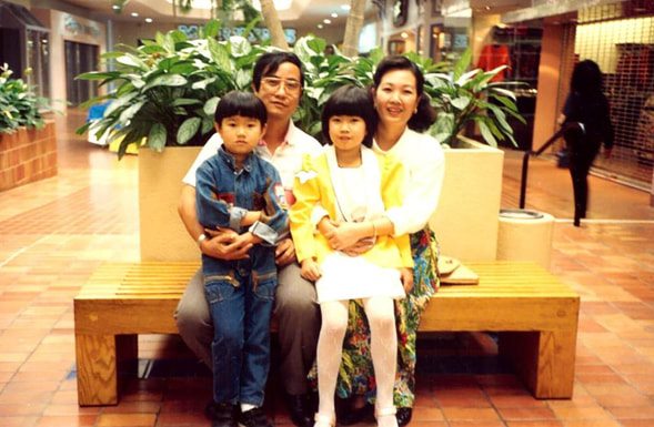Huỳnh Kỳ Sỹ chụp hình chung với cha mẹ và chị. (Facebook)