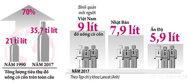 Đồ hoạ tiêu thụ rượu, bia- (Ảnh: Đông Xuân, Thanh niên)