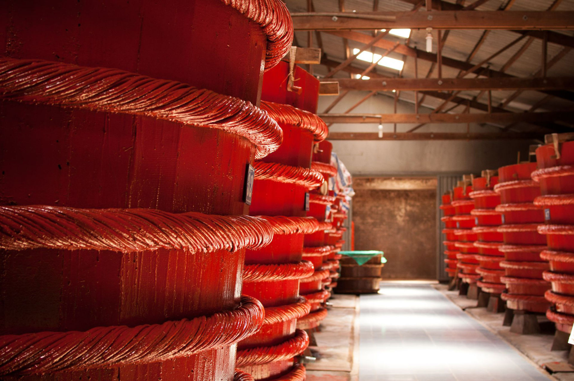 “Nhà Thùng” Red Boat với thùng chứa bằng gỗ để giữ nguyên truyền thống. (Hình: Tiffany Phạm cung cấp)