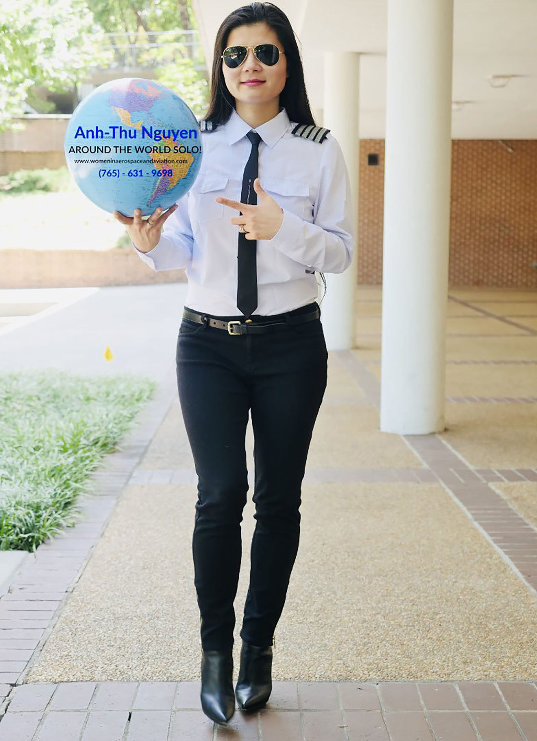 Nữ phi công Nguyễn Anh Thư sẽ bay vòng quanh thế giới vào Tháng Năm, 2021. (Hình: Twitter pilot anh-thu womeninAA)
