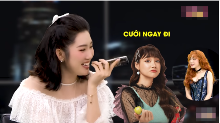 Nhã Phương bắt máy ngay khi Thúy Ngân thực hiện cuộc gọi. Thúy Ngân liền tiết lộ được đàn anh tỏ tình sau khi quay hình xong một chương trình. Sự cố gắng diễn xuất trong giọng nói của Thúy Ngân đã khiến Nhã Phương tin Trương Thế Vinh tỏ tình là thật. Khi được Thúy Ngân hỏi "giờ làm sao", Nhã Phương liền xúi "cưới ngay đi" làm Thúy Ngân lẫn Elly Trần bất ngờ trước sự táo bạo của vợ Mười Khó.