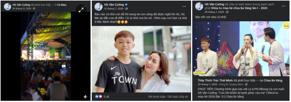 Cụ thể, ngay trên trang cá nhân, Hồ Văn Cường đã đăng tải lịch diễn tại Mỹ trong các ngày 17-18/8/2019, 21/8/2019, 29/8/2019. Tới tháng 11, giọng ca sinh năm 2003 vẫn cùng mẹ nuôi Phi Nhung đi diễn tại Thụy Điển và một số địa điểm khác ở châu Âu.