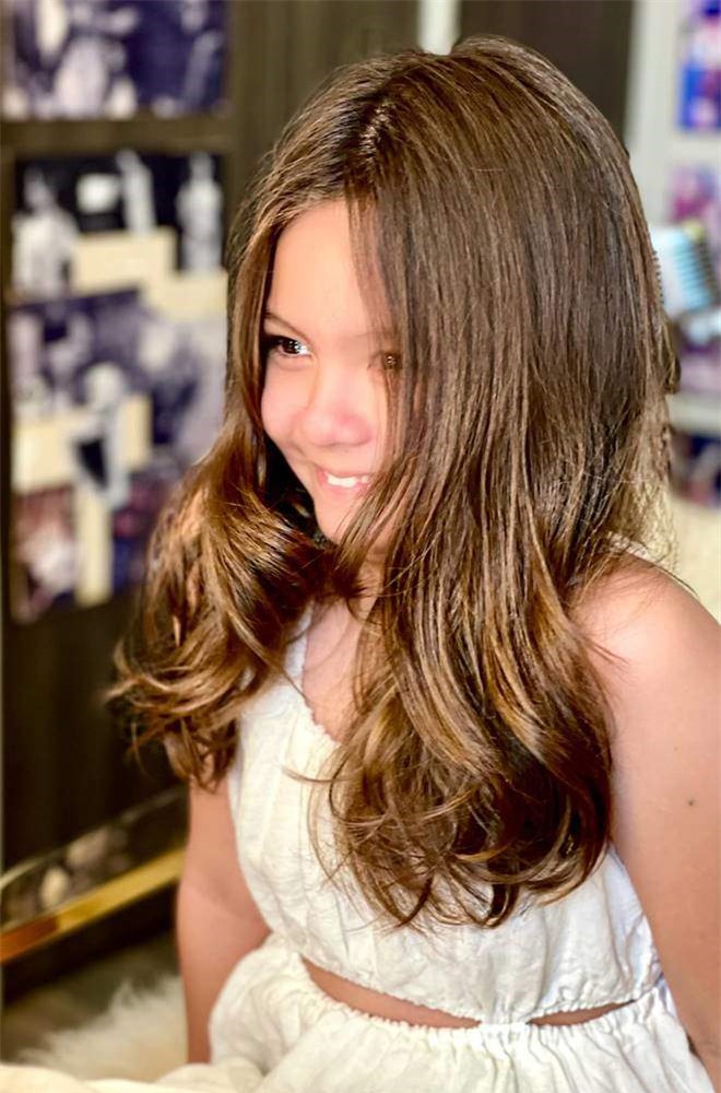 Trong số 2 nhóc tỳ, cô em Tép được chú ý hơn cả vì là con gái và có nhiều nét giống mẹ Hồng Nhung. Mới đây là lần hiếm hoi bà mẹ chia sẻ hình ảnh Tép ở tuổi lên 9 khiến nhiều người ngỡ ngàng vì cô nhóc lớn bổng, phổng phao, sở hữu đôi chân dài miên man dự đoán tương lai sẽ trở thành người mẫu. Thậm chí, trong diện mạo mới là bộ tóc mẹ Hồng Nhung mới cắt cho, Tép trông xinh đẹp chẳng kém các thiếu nữ tuổi mới lớn.