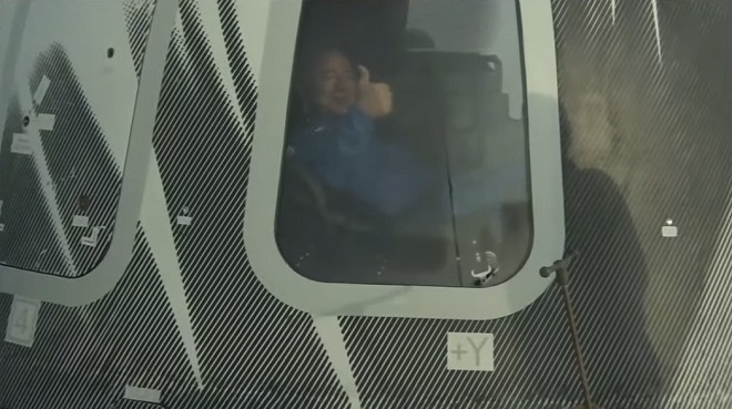 Sau khi trở về Trái đất thành công, tỉ phú Bezos nói bên trong khoang chở khách, rằng “đây là ngày tuyệt nhất”. Ông Bezos nói với cụ bà Wally Funk, 82 tuổi, rằng “thật đáng kinh ngạc” và bà đáp lời: “Đúng là như vậy”.