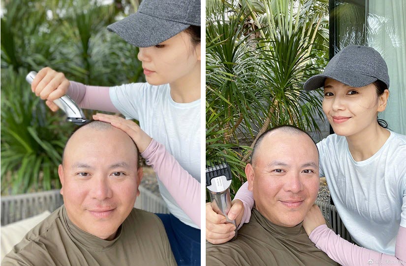 Lưu Đào đăng ảnh cắt tóc cho chồng.