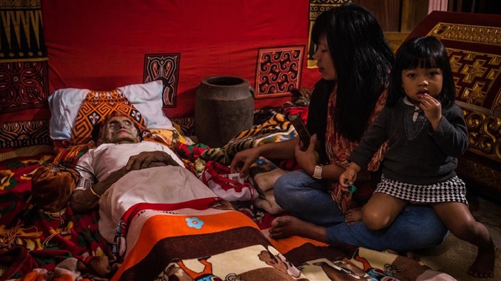 Sau đó, những thi thể này được bọc trong chăn và cất giữ trên giường đặt trong nhà; hoặc đối với những gia đình giàu có hơn, những thi thể sẽ được “nghỉ ngơi” trong một tongkonan - một ngôi nhà “tổ tiên” truyền thống của tộc người Toraja với mái nhà cong vút hình chiếc thuyền rất đặc biệt.