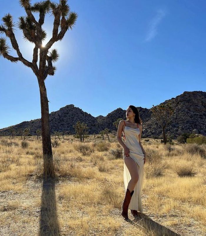Mới đây trên trang cá nhân, Chi Pu đăng tải loạt ảnh với style bốc lửa, hoang dã. Thả dáng trên cánh đồng cỏ khô, người đẹp diện đầm hai dây xẻ cao đùi khoe đôi chân dài thon gọn.