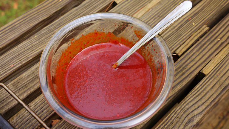 Cho bột ớt Hàn Quốc, siro ngô, giấm, dầu thực vật và nước vào bát. Dùng thìa trộn đều hỗn hợp cho đến khi mọi thứ hòa tan vào nhau tạo nên hỗn hợp sánh mịn.