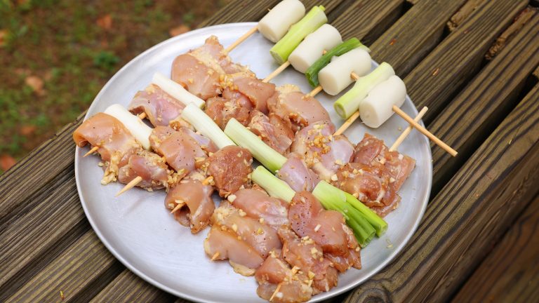 2. Nếu sử dụng bánh gạo, hãy xiên thành những que riêng vì thời gian chín của bánh gạo và gà chênh nhau khá lớn.