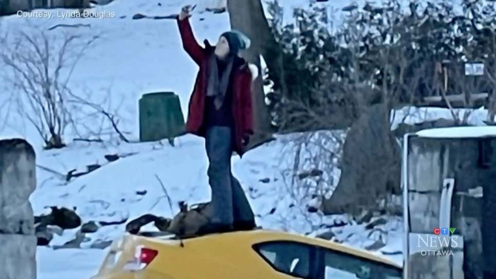 Người phụ nữ thản nhiên chụp ảnh tự sướng, mặc ô tô chìm xuống sông băng. Ảnh CTV Ottawa