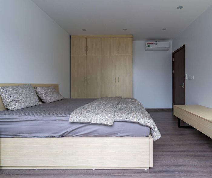 Phòng ngủ thiết kế theo hướng tối giản, để gia chủ thoải mái khi nghỉ ngơi.