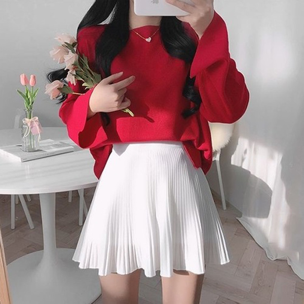Áo len đỏ phù hợp với không khí lạnh của miền Bắc. Dịp Tết đến xuân về, bạn có vô số cách mix đồ với item này cho chất.