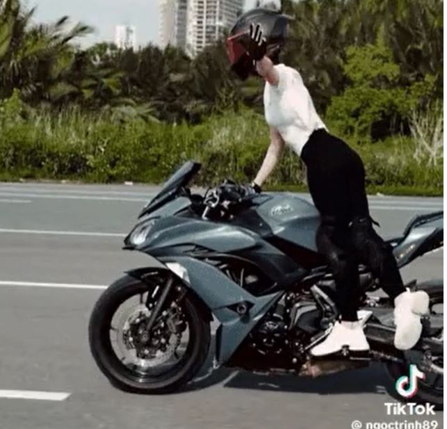 Những tư thế chạy xe của Ngọc Trinh đều không đúng chuẩn, có thể gây nguy hiểm cho người bắt chước