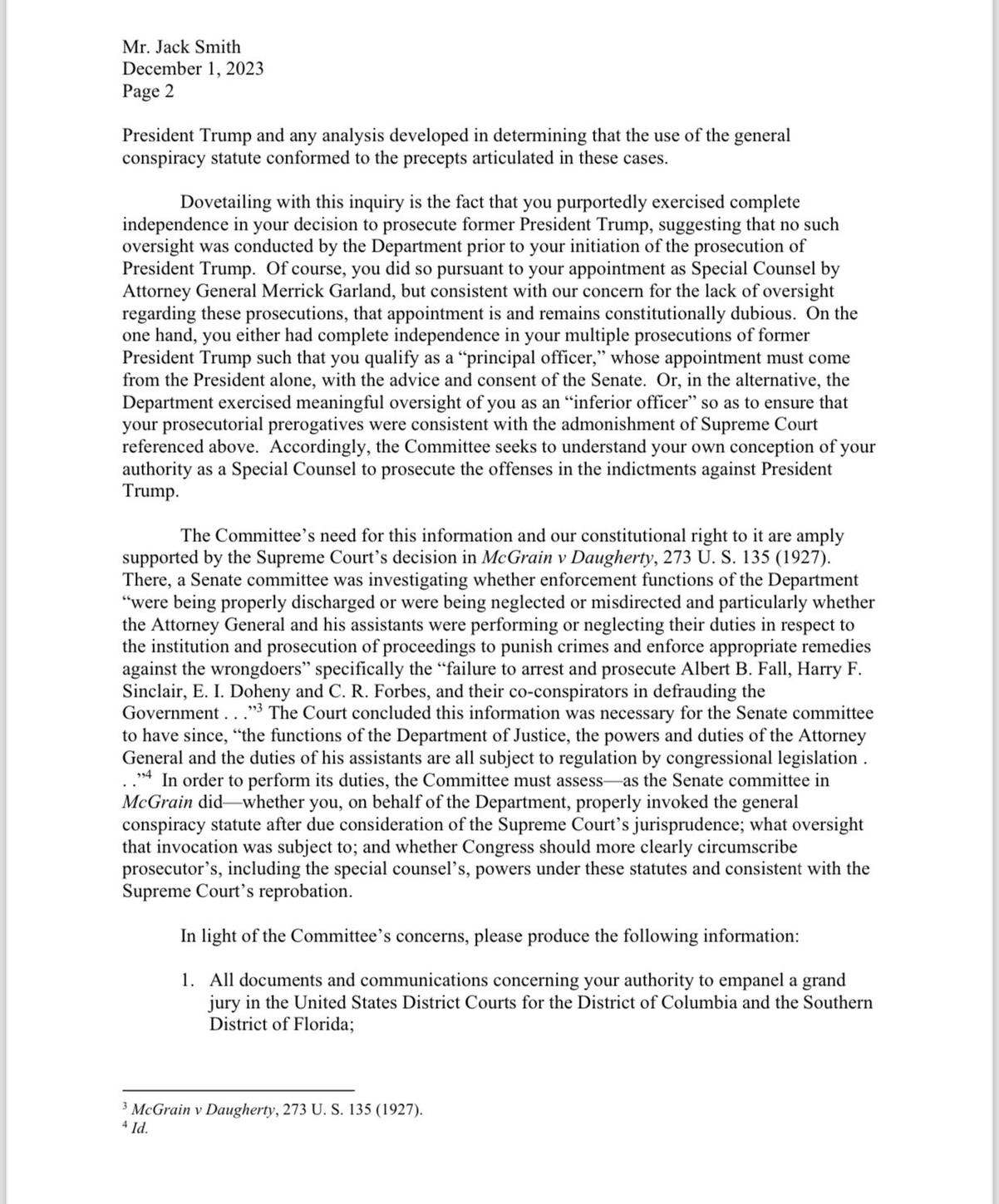 Đảng Cộng ḥa tại Hạ viện yêu cầu mọi liên lạc giữa Jack Smith và DOJ về quyết định truy tố Trump