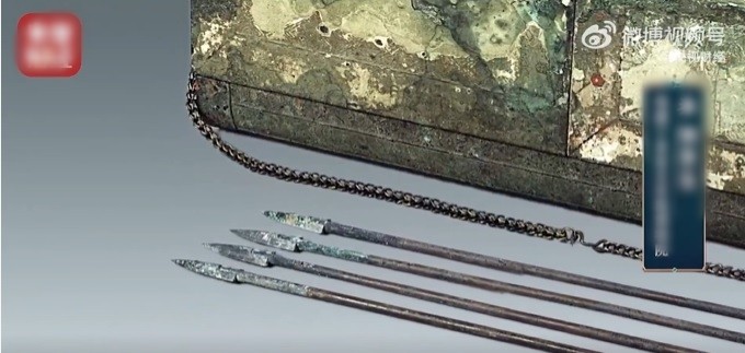 Dương Chí Cương - Giám đốc Bảo tàng Thượng Hải ở Trung Quốc đại lục cho biết, hộp đựng mũi tên được làm bằng đồng vẫn còn nguyên vẹn dù ở dưới lòng đất hơn 2000 năm. Hộp đựng này được khai quật từ lăng mộ của Tần Thuy Hoàng. Tất cả được đặt trong một cỗ xe ngựa mô phòng cũng được làm bằng đồng. Vào thời nhà Tần, hộp đựng mũi tên là trang bị cơ bản trên xe ngựa.